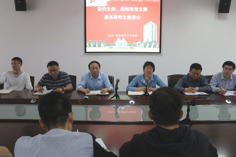 为了贯彻落实党的群众路线精神,研究生处、规划处党支部组织的“服务研究生”座谈会于5月29日下午在行政楼B402举行。党支部书记、研究生处处长陈凌珊、规划处处长沈勤出席了会议,研究生处、规划处党支部全体党员及各学院研究生代表参加了座谈会,会议由研究生处王成涛老师主持。