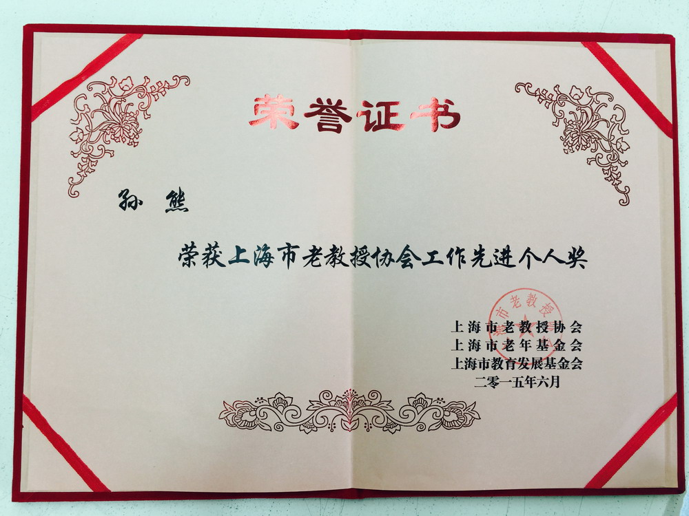 日前,本市高校老教授与老教授协会中一批先进代表,受到了上海市老教授协会、上海市老年基金会和上海市教育发展基金会的共同表彰。服装学院二级关工委成员孙熊教授(原服装学院副院长)荣获“上海市老教授协会工作先进个人奖”荣誉称号。