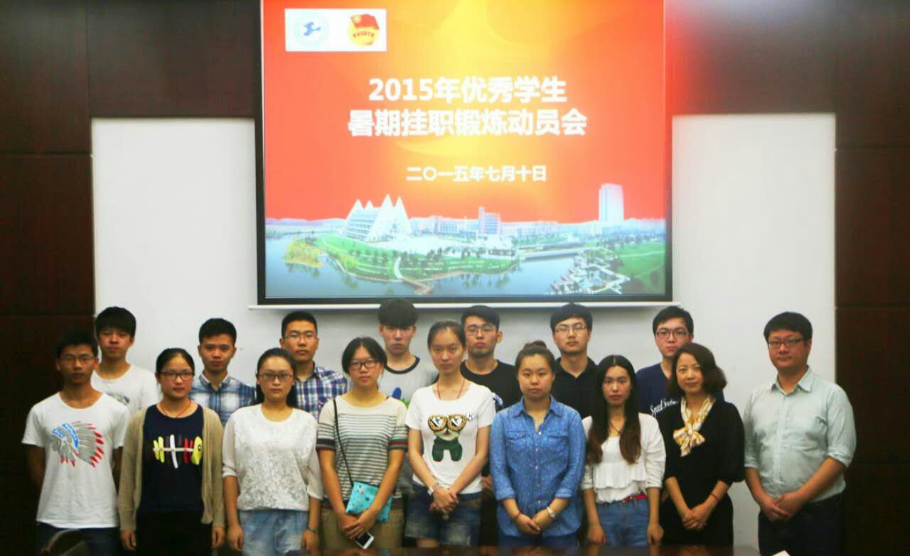 7月10日上午,2015年优秀学生暑期挂职锻炼工作动员会在图文信息中心第五报告厅举行。团委书记朱蓓和挂职锻炼学生代表出席了动员会。
