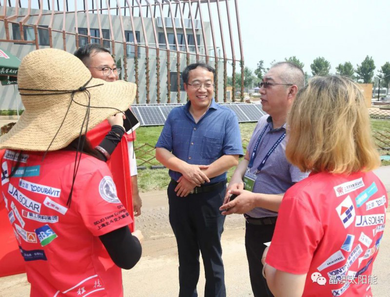 晶澳副总裁孙广彬先生(右二)与赛队师生交流