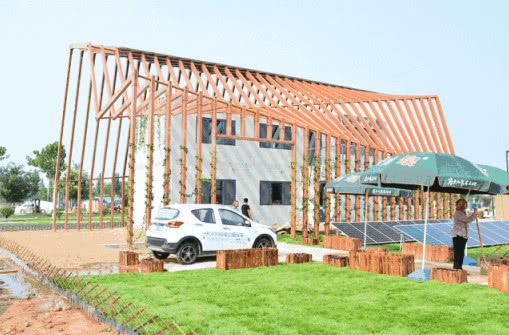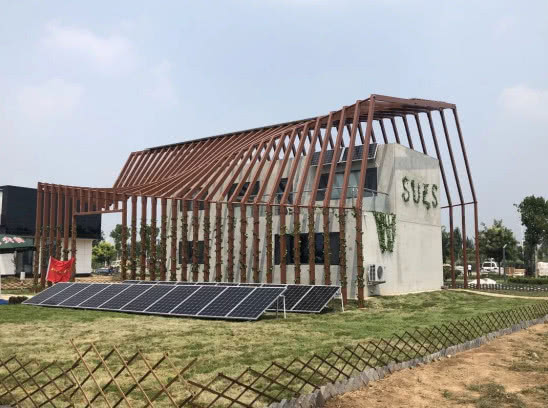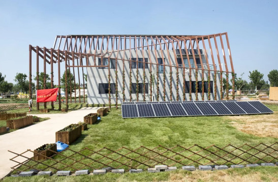 “光影律动”充分利用太阳能热水系统,不仅可以为室内散热器供暖,还可以提供热水,做饭不用煤气,而是用快速加热的电磁炉,由锦浪光伏逆变器输出交流电,既节约能源又减少了二氧化碳的排放,实现能源自给,满足光伏发电系统和热水系统的要求。房子顶层太阳能板,随着太阳的东升西落,水光律动微波粼粼,水池的倒影也在变化产生一种艺术美。”