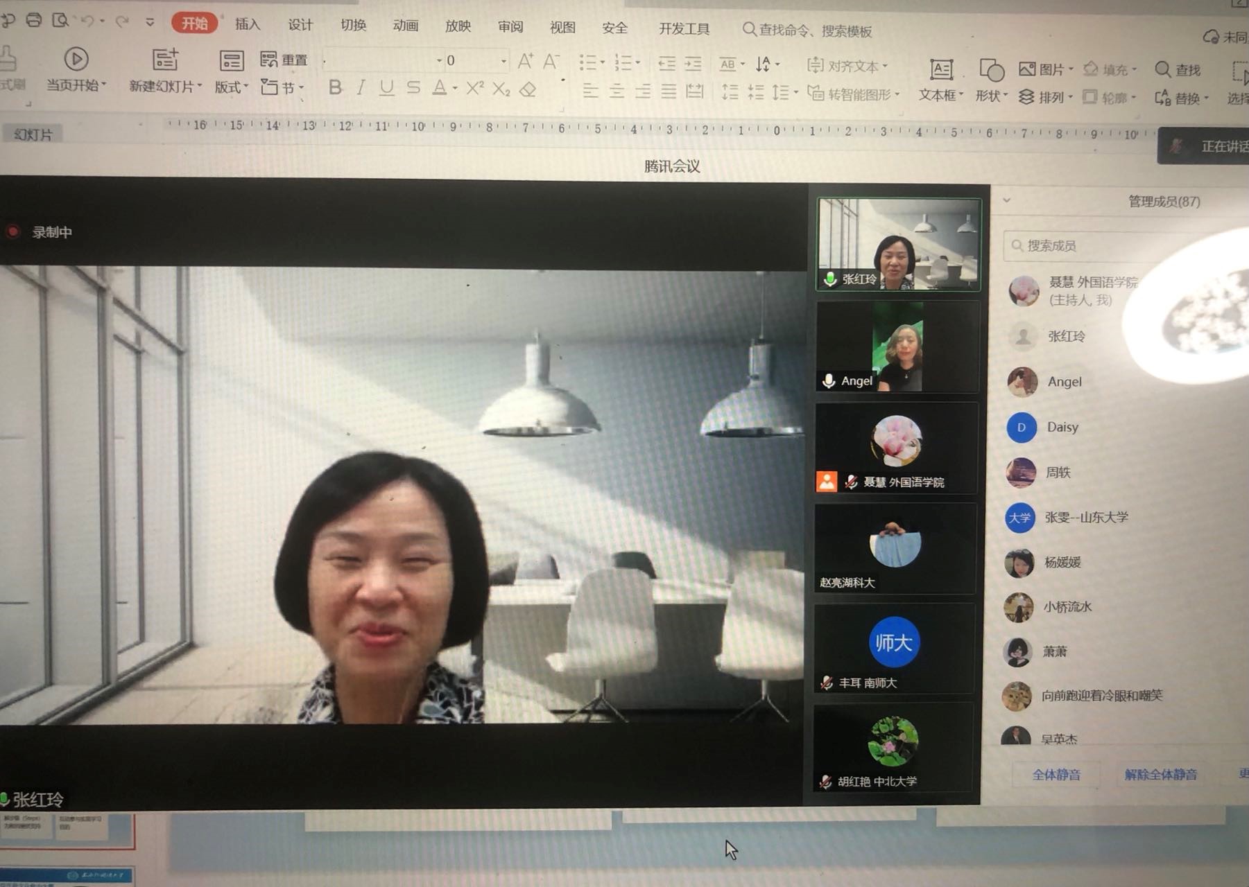 讲座由外国语学院张冰天副院长主持,大学外语教学部陈文华副主任做总结,讲座通过腾讯会议云端进行,汇聚了近120人校内外师生积极参与。