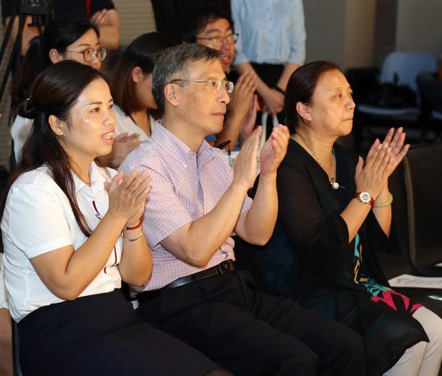 值得一提的是,此次民族服饰的动态展示秀演并不全是由苗族的艺术表演者来完成的,上海工程技术大学服装表演专业的模特学生们也参与到了此次苗族服饰文化的展演中。模特学生们在苗族艺匠们的指导下,学会了苗族特有的服饰穿着礼仪。恰逢中秋佳节到来之际,苗族艺匠们与学生模特们一同,以民族独特的中秋时节服饰礼仪,向在场的师生们诉说了一场中华民族传统文化别样的团圆故事。学校也邀请了全校的少数民族学生代表一同品赏民族传统文化的魅力,共话民族大团结的快乐。