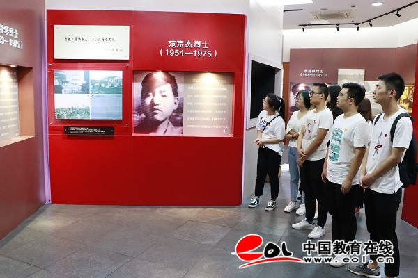 升旗仪式后,青年大学生来到上海市爱国主义教育基地-松江烈士陵园,瞻仰革命先烈,学习革命精神。在红旗纪念碑前,同学们举行了默哀仪式,献上了代表思念与崇敬的花环;在纪念展馆内,同学们依次了解了侯绍裘、袁世钊、姜辉麟等烈士的光辉历程和英勇事迹,无不对他们勇于革新和勇于奉献的精神心生敬意。