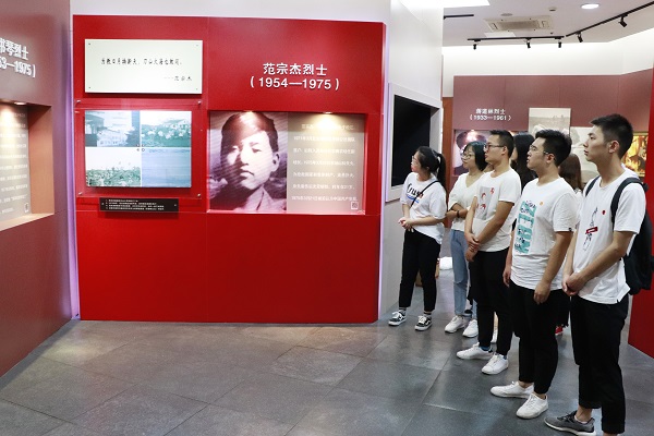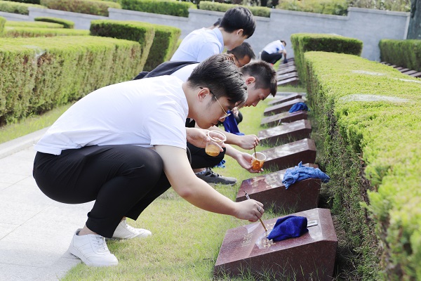 青年大学生还来到松江烈士陵园,瞻仰革命先烈,学习革命精神。在红旗纪念碑前,同学们举行了默哀仪式,献上了代表思念与崇敬的花环。随后,青年学子拿起毛笔、蘸上金粉,为陵园内173位烈士墓碑描金临摹。每一笔一划,同学们都小心翼翼、耐心细致,防止笔墨描出边外。来自化学化工学院的大一学生刘书嘉有感而发:“三个小时临摹墓碑活动,虽然一直保持着一个姿势,手会很酸痛,但我们每个同学都一笔一划用心在描画,生怕描到字体以外或是粗细不均。烈士们为了国家献出了自己的生命,我想我们用这样的方式和认真的态度向他们致敬,今后也要用这样的态度去认真学习工作,就是对他们最好的纪念和缅怀。”