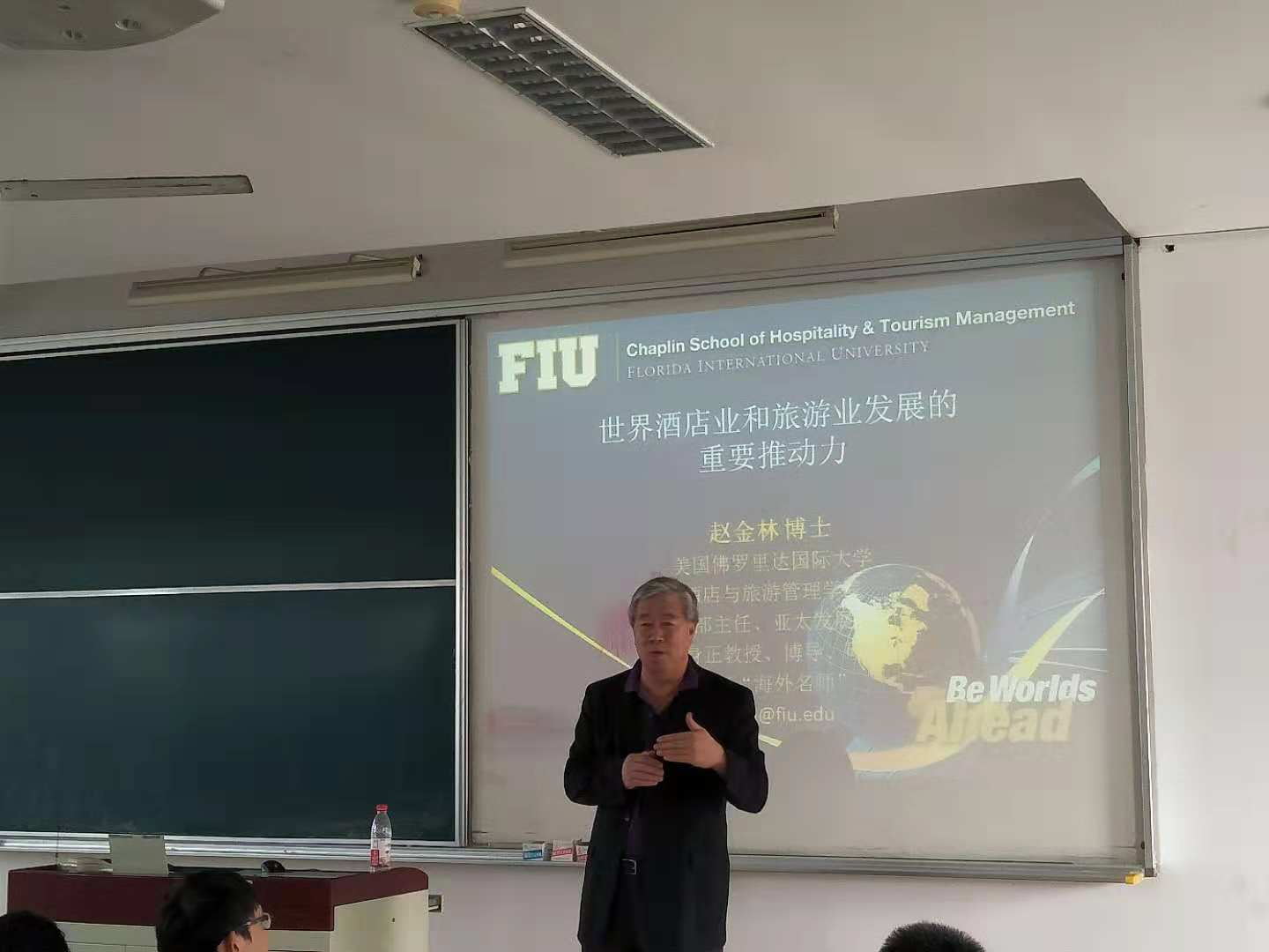 10月28日,美国佛罗里达国际大学旅游与酒店管理学院赵金林教授来访工程大,为邮轮专业本科生做了题为“世界酒店业和旅游业发展的重要推动力”的专题讲座,深入浅出地向同学们介绍了世界酒店业和旅游业发展的重要推动力的主要内容。