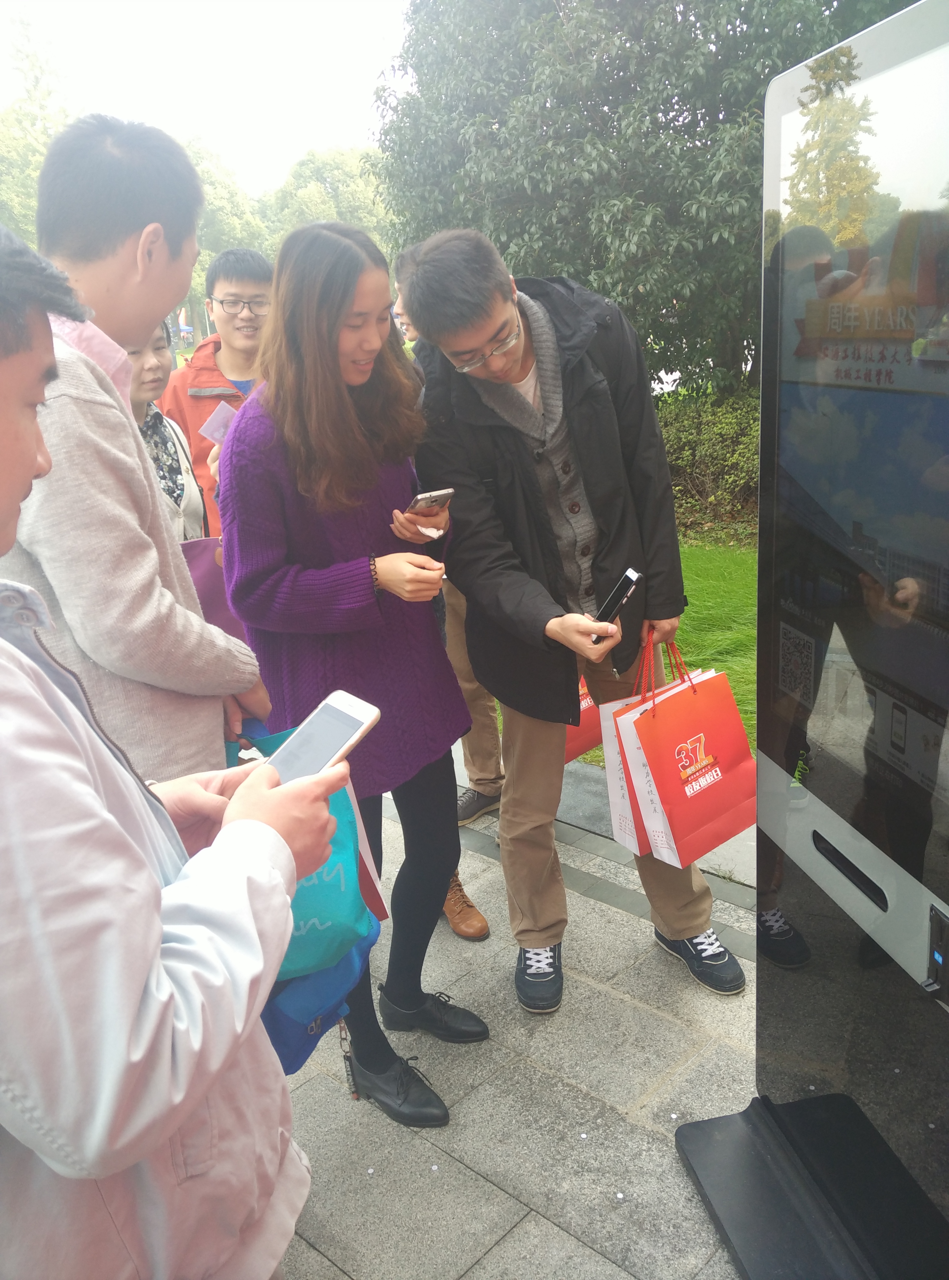 此次寄语展板摆放在了教学楼B楼和C楼大台阶下空地处,志愿者引导每位校友在签名墙上留下了自己的祝福寄语,学院还贴心地准备了学士服,供校友们拍摄主题照片。每位回家的校友通过扫描关注学院团委学生会的官方微信平台,即可免费现场打印温馨的返校照片,送给校友留做纪念。另外,校友们在现场录制了一段段充满爱意的祝福视频,表达了对最美工程大的无限热爱和祝福,精心设计的互动环节吸引了很多返校校友的欢迎。