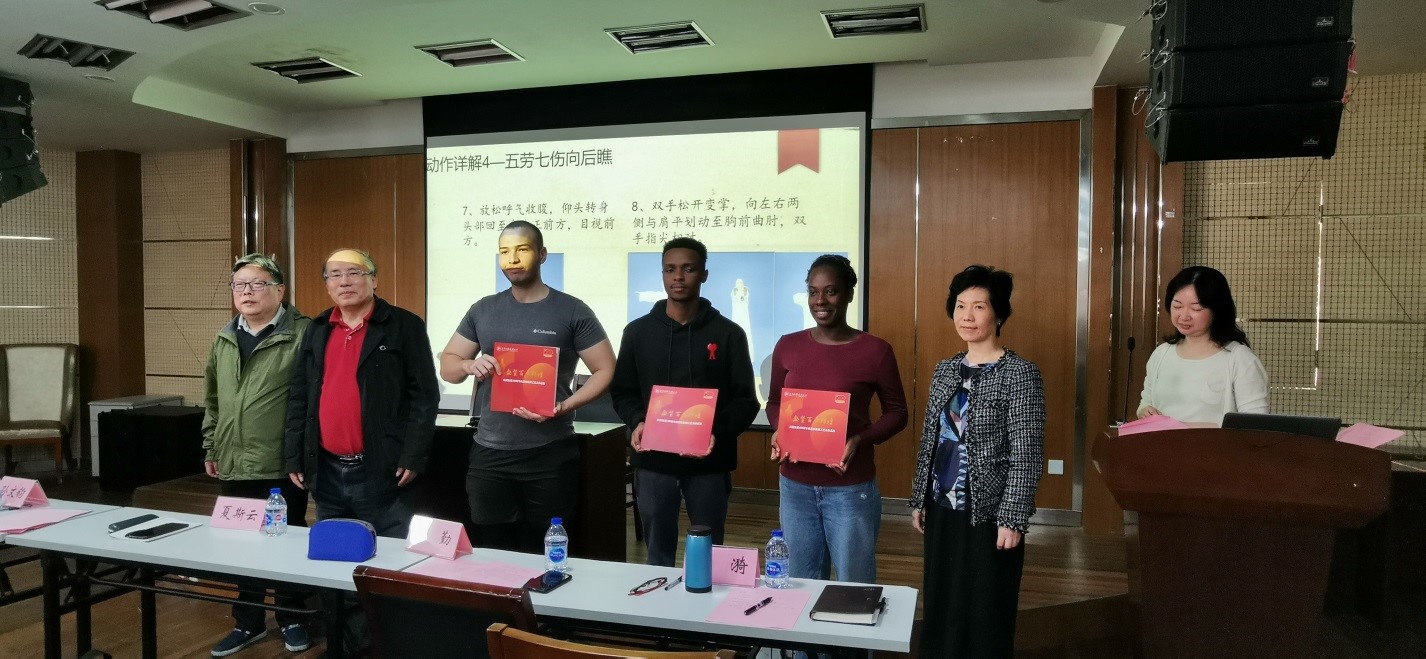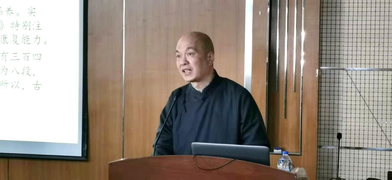 为进一步促进武术教育事业的发展,推动传统武术进校园,10月29日上午,由组织部(老干部办公室)、国际教育学院、离退休党工委(退休工作处)主办,校老教授协会承办的“传统武术走进校园 中华文化传播海外——河南省非物质文化遗产代表八段锦讲座”在长宁校区综合楼5楼顺利召开。本次讲座由河南省非物质文化遗产八段锦代表性传承人焦宏敏教授主讲。校老教授协会会长夏斯云,国际交流处处长王勤,离退休党工委书记、退休工作处处长孙文钧,组织部老干部办公室常务副主任赵雷,退休教工党委副书记、退休工作处副处长张漪,校老教协的老教授代表,陈氏太极拳传承人陈莹,国家级非遗项目卢氏心意拳保护单位负责人余江,太极拳社团负责人李利国,各退休教工社团的退休教师代表,国际教育学院国际学生代表参加了此次讲座。本次讲座由国际交流处处长王勤主持。