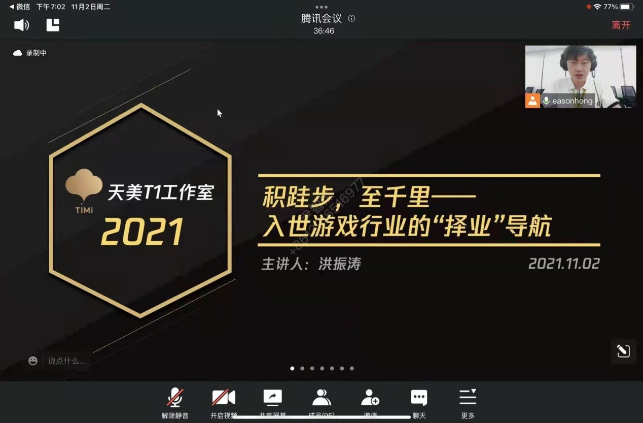 11月2日,中韩多媒体设计学院邀请了腾讯天美T1工作室高级游戏运营经理洪振涛为学院师生带来一场名为“积跬步,至千里”——入世游戏行业的择业导航的讲座。中韩多媒体设计学院专业老师、硕士研究生导师及本科生、研究生在线聆听了该讲座。