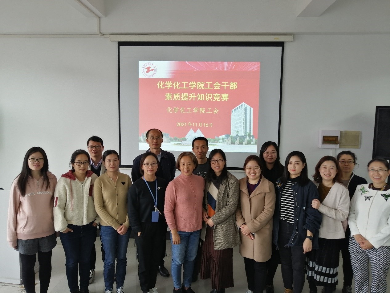 11月16日下午,化学化工学院工会在实训楼4418会议室开展了化学化工学院工会干部素质提升知识竞赛活动。化学化工学院党委书记宋勤健,院长饶品华,学院工会委员和工会积极分子出席了本次会议。