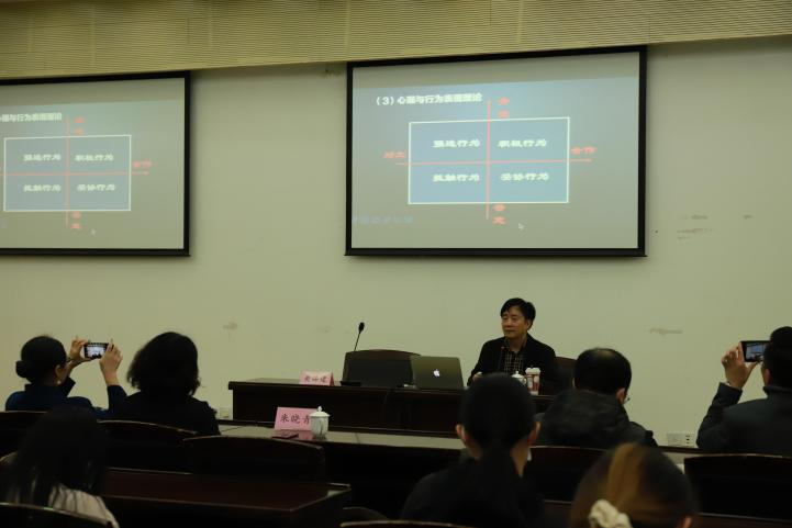和谐融洽的导学关系,是研究生健康成长的关键,也是导师良好科研的保证。为增进导师与学生的沟通了解,培养导师与学生的师生情谊,推动导学关系建设,营造和谐融洽、积极向上的校园氛围,心理健康教育中心邀请黄晞建教授为研究生导师、辅导员和研究生作题为“从心理学视角解析导学艺术”的讲座,校党委副书记、副校长朱晓青老师出席了本次讲座。