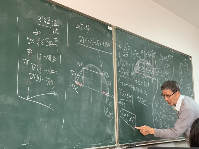 定教授从严格凸定义讲起,然后到等距延拓问题的提出,用浅显易懂的语言详细讲述了该问题的研究进展,并将自己近期的研究成果做了详细的报告。为了让师生能更加深刻的体会到等距延拓问题的魅力和自己研究成果的本质,定光桂教授不顾近80岁的高龄,在近两个半小时的报告里,他全程用板书讲解。定光桂教授的报告,不仅使广大师生熟悉了等距延拓问题的最新进展,更使大家体会到一位老教授做科研的精神。在座师生无一不受益匪浅,纷纷表示将带着诚信与感恩之心,在未来的路上不断奋斗,努力创新!
