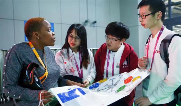 在国家会展中心数据管理岗,同学们还要两两一组登记嘉宾登车信息,并查看票根。每一组大概负责6辆车,有200多个嘉宾,在短短半小时之内需要仔细完成,强度不小。同学们坦言,第一次在短时间看到很多国家的嘉宾信息,都觉得非常新奇。工作来不得半点马虎,只有更加细心投入,不辱使命。