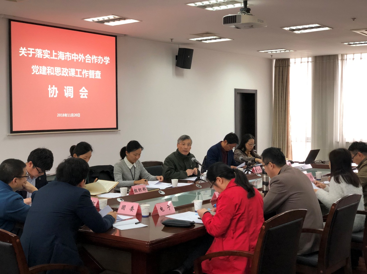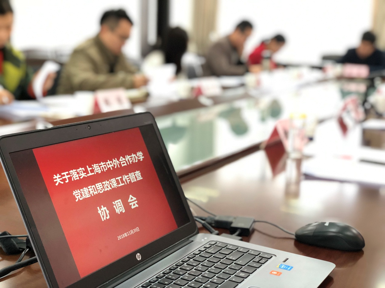 11月20日上午,校党委在行政楼B402会议室召开关于落实上海市中外合作办学党建和思政课工作督查协调会。校党委副书记、纪委书记鲁嘉华出席会议,党委组织部、学工部(研工部)、团委、教务处、国际交流处、马克思主义学院负责人;机械与汽车工程学院党委、电子电气工程学院党委、高职学院党委、艺术设计学院党委、服装学院党委负责人等参加会议。