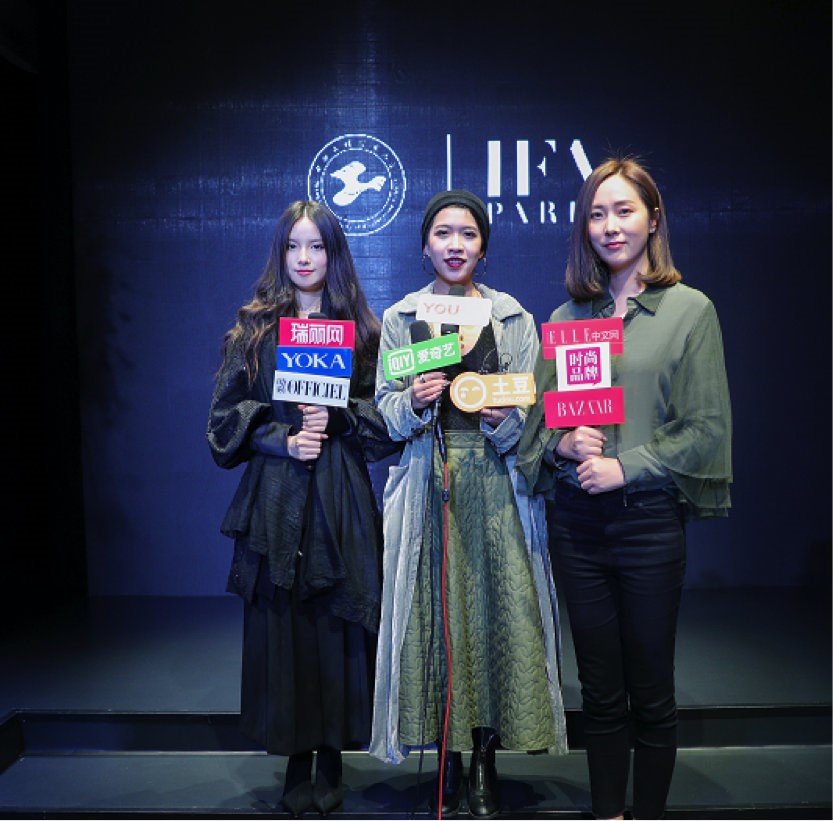 11月18日,上海工程技术大学中法埃菲时装设计师学院IFA Paris(艺法巴黎)携35套作品亮相外滩二十二号时尚峰荟爱魅之夜设计师品牌发布活动。
