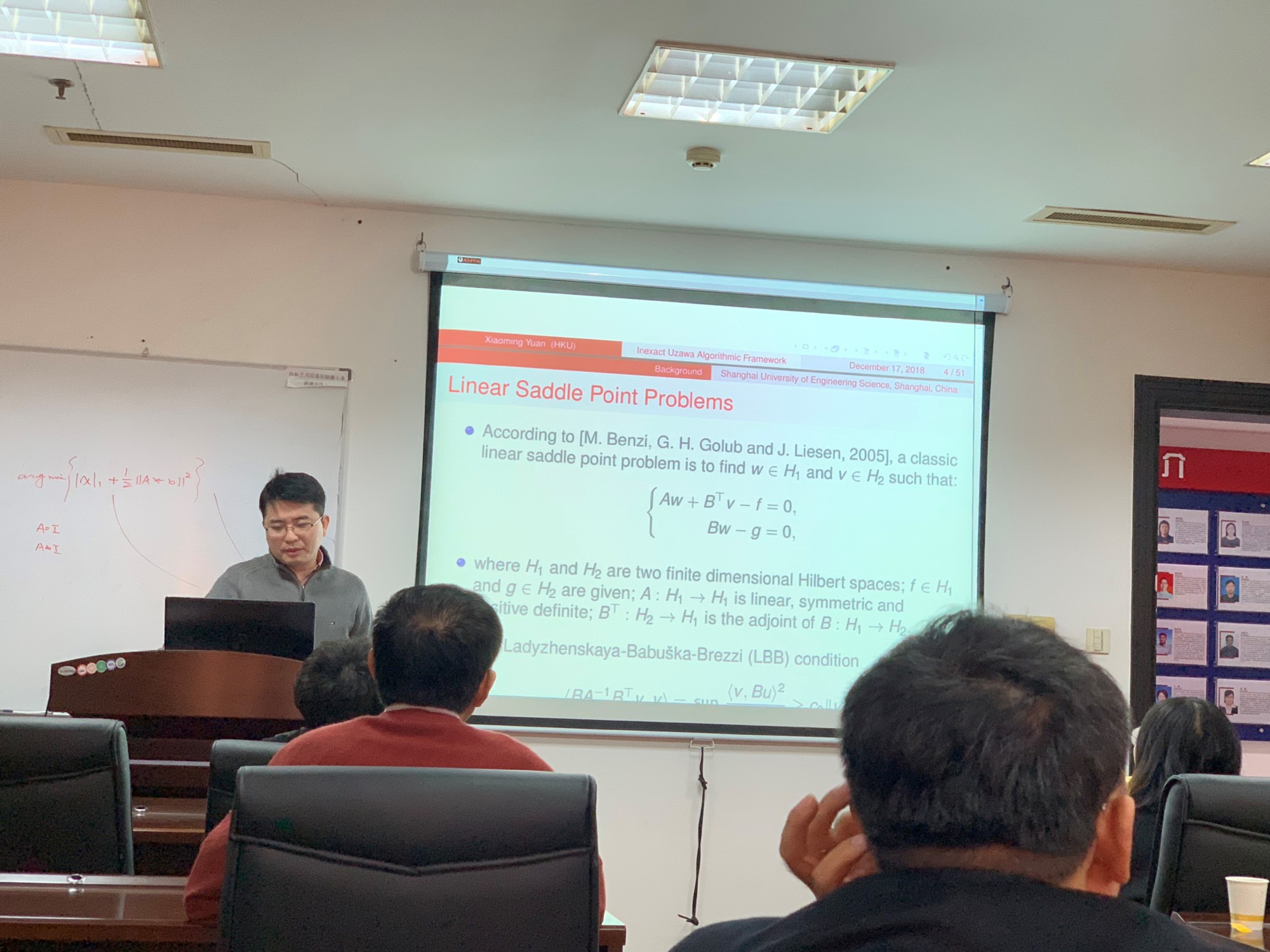 讲座题目:An Inexact Uzawa Algorithmic Framework for Nonlinear Saddle Point Problems
