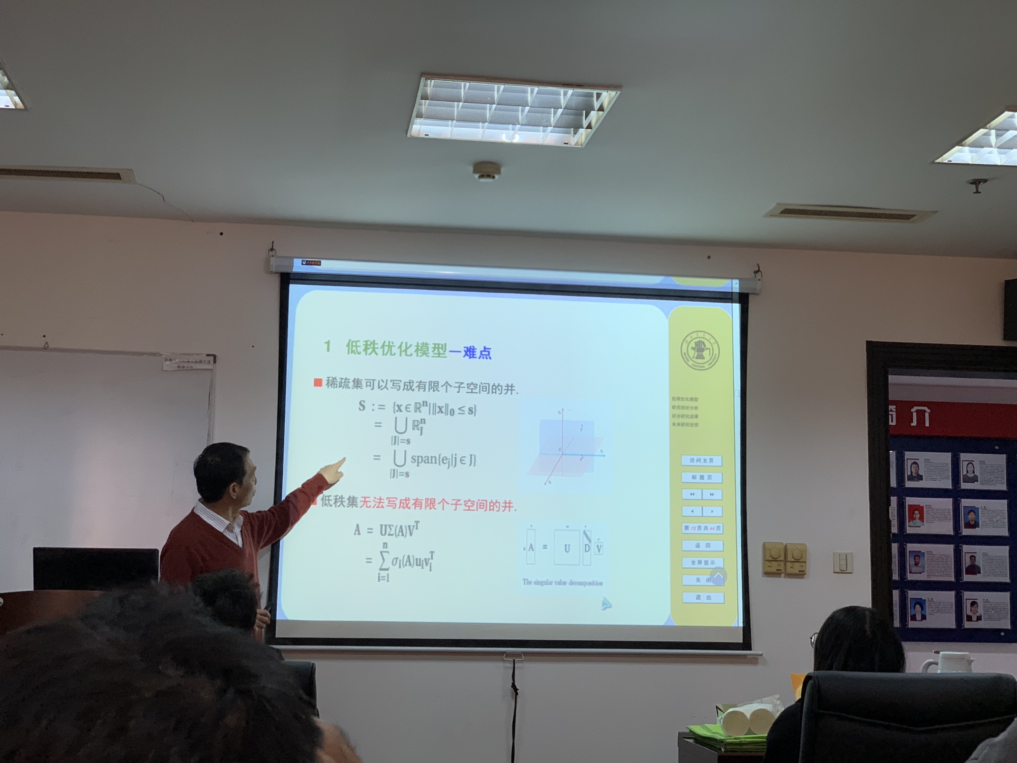 12月17日下午,北京交通大学修乃华教授应数理与统计学院邀请在行政楼1307学术报告厅为广大师生作题为“机器学习中的低秩优化”的学术报告。报告会由数理与统计学院王国强教授主持。
