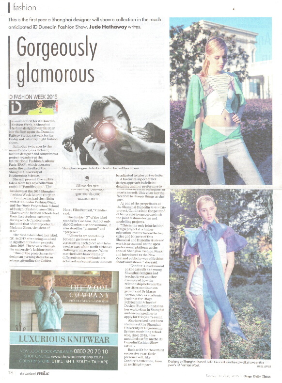 Also involved have been students of the Shanghai University of Engineering Science modelling school who, since 2013, have modelled outfits on the iD Dunedin Fashion Show catwalk.