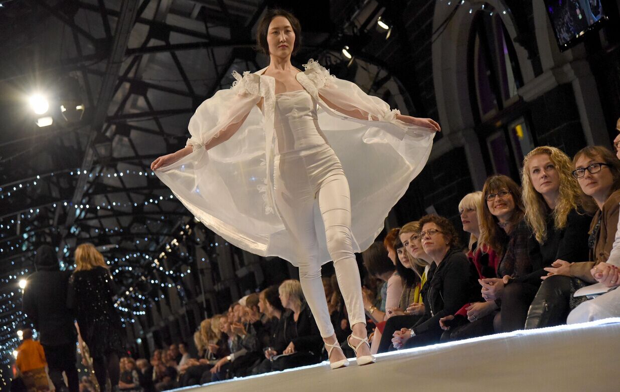 Shanghai-based designer Jialin Guo (GG) brought originality and fun to the iD catwalk with her light-as-air, often diaphanous pieces in white and a summery nubile green.