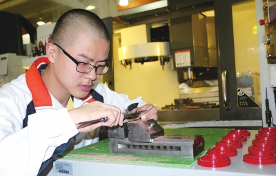 开学伊始,还没有摸着课本的2015中本贯通班同学,先进入实训室,和钳工、模具来了个亲密接触。
