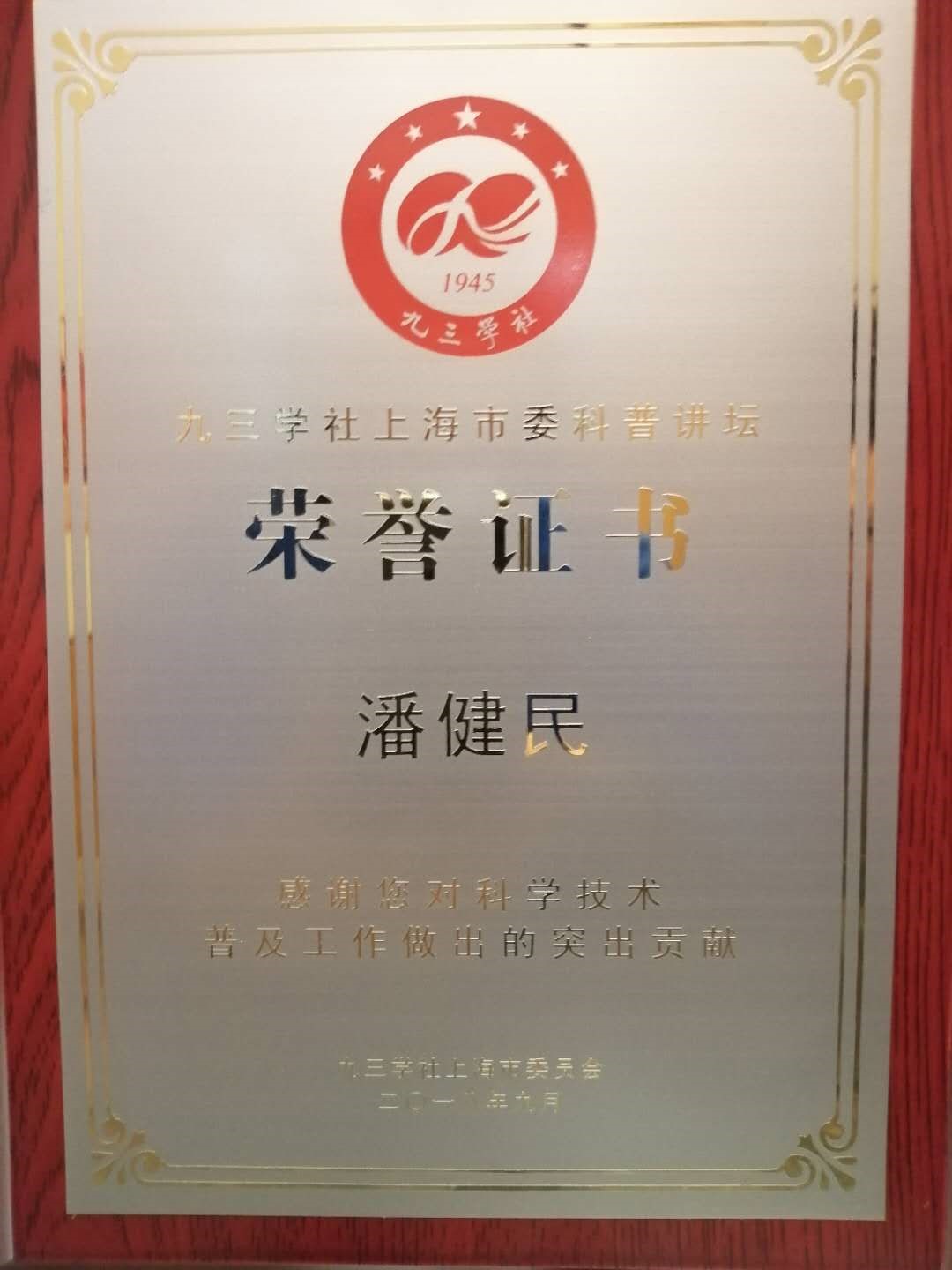 潘健民老师利用业余时间和九三上海市委社会服务部一起下基层到社区、到学校进行科普活动,为科普事业积极贡献。