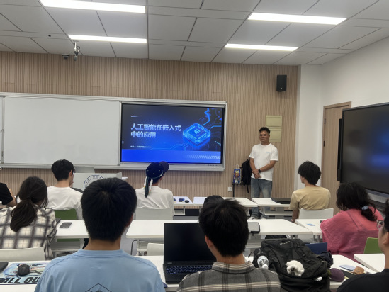 本次讲座的主题是“探讨人工智能在嵌入式领域的应用,涵盖技术原理与实践案例,解析发展趋势”。李萌从服务机器人、智能汽车和智能家居等应用实例引入,展示了AI与嵌入式系统结合的实现路径与创新模式;深入讲解了嵌入式硬件资源优化、轻量化算法部署、实时操作系统适配和构建高效AIoT解决方案(人工智能AI技术与物联网IoT技术相结合,以实现更高效的自动化和基于数据的决策的方案);引导同学们一起展望了边缘计算与AI芯片协同发展,推动嵌入式系统向自主决策和自适应学习方向突破。