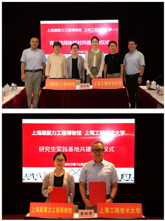 为深入推进大中小学思想政治教育一体化建设,10月14日,上海凝聚力工程博物馆与上海工程技术大学在松江校区举行“大思政课”育人共同体结对共建签约仪式。学校组织部、宣传部、管理学院、附属松江泗泾实验学校相关负责人参加活动。