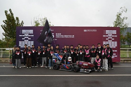 锐狮方程式车队依托机械与汽车工程学院大学生汽车科创基地,基于项目制学习,通过赛车外形设计及分析,整车各系统设计及测试,车队商业运行等全流程的实践训练,全面培养学生的应用创新能力。在为期一年的备赛周期中,车队针对赛道特性构建“发动机优化-底盘调校-悬挂迭代”三位一体技术体系,提高赛车高速长距离行驶的稳定性。面对赛场降雨导致的赛道湿滑、气温骤降等挑战,参赛赛车基于前期设计展现出强大的动力和底盘性能,始终保持稳定发挥,最终取得优异成绩。
