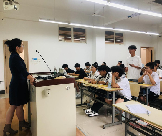 课堂上,王丽与学生就“职业发展”“职场生态”“终身学习”等用英文进行交流,提升了学生职场英语沟通的能力。王丽还分享了现代职场中面临的挑战、行业发展趋势、现代职场所青睐的人才素养、个人能力与职业发展等。