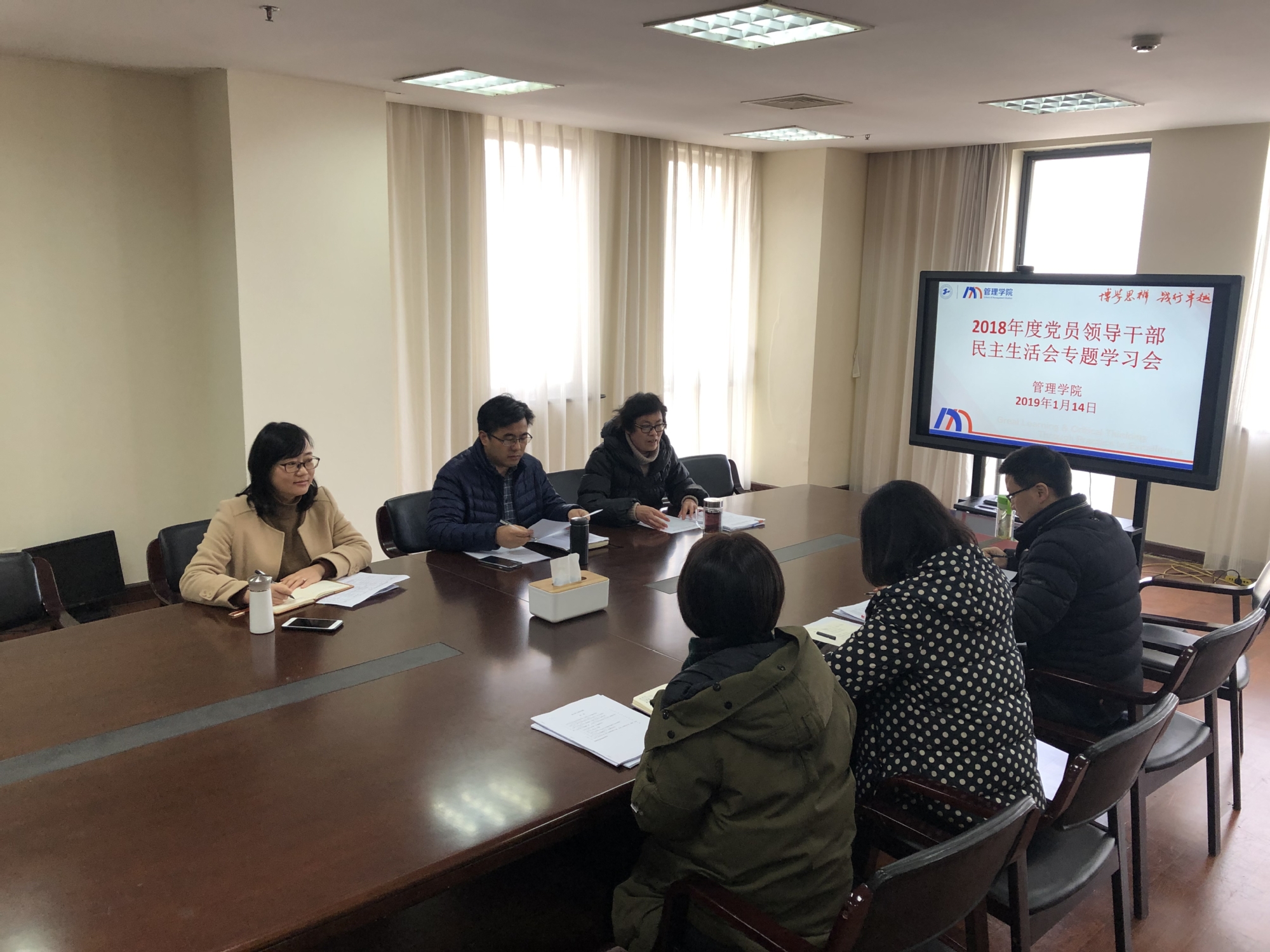 根据《上海工程技术大学党委关于认真开好2018年度处级党员领导干部民主生活会的通知》的要求, 1月14日上午,管理学院召开2018年度党员领导干部民主生活会专题学习会议,学院党委书记周洁、院长胡斌、学院党委副书记程玉莲及学院党委委员参加会议,会议由院党委书记周洁主持。