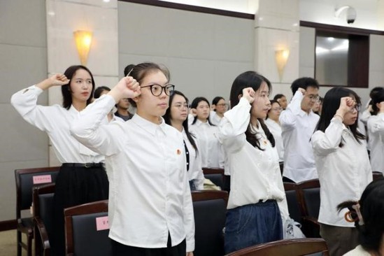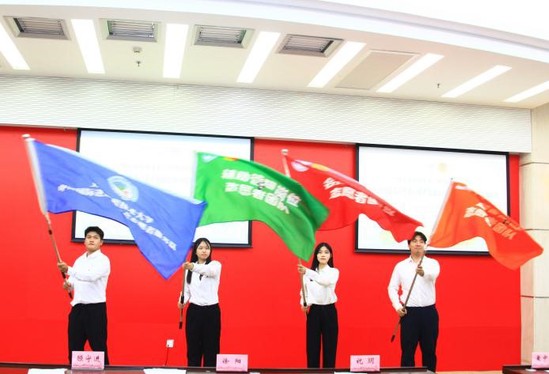 顾守进为第八届进博会志愿者代表赠送书籍,鼓励志愿者们在服务实践中提升理论素养、坚定理想信念。祝玥为“小叶子”讲师团颁发聘书。闵丹介绍了进博会志愿者工作筹备情况。校青年志愿者协会会长孙广涛同学带领全体志愿者宣誓。