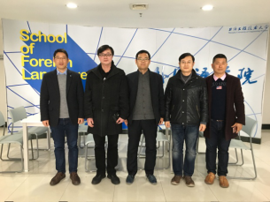 王刚院长代表外国语学院对章辉主任的到来表示热烈欢迎。会谈中,章辉主任首先阐述了双方可能合作的四个领域,即商业英语辩论大赛、大赛承办、学生培养及科技英语口语证书,并希望双方能进行深度合作。王刚院长总体上介绍了外国语学院教学、科研及学生培养事宜,刘金龙副院长详述了学院翻译专业的办学特色、培养方案及可能合作的几个方面,张冰天副院长简要介绍了我校及学院国际化办学及学生培养模式。