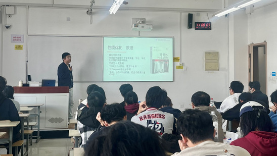 吕涛系统性地剖析了现代处理器的内部架构,深入浅出地讲解了性能优化的基本原理与方法论,引导同学们思考如何通过算法优化、数据布局调整、并行计算等手段充分“压榨”硬件潜力。重点介绍了一系列业界广泛使用的软件工具,如性能分析器(Profiler)、编译器优化选项等,让同学们对工业界的研发流程有了直观认识。