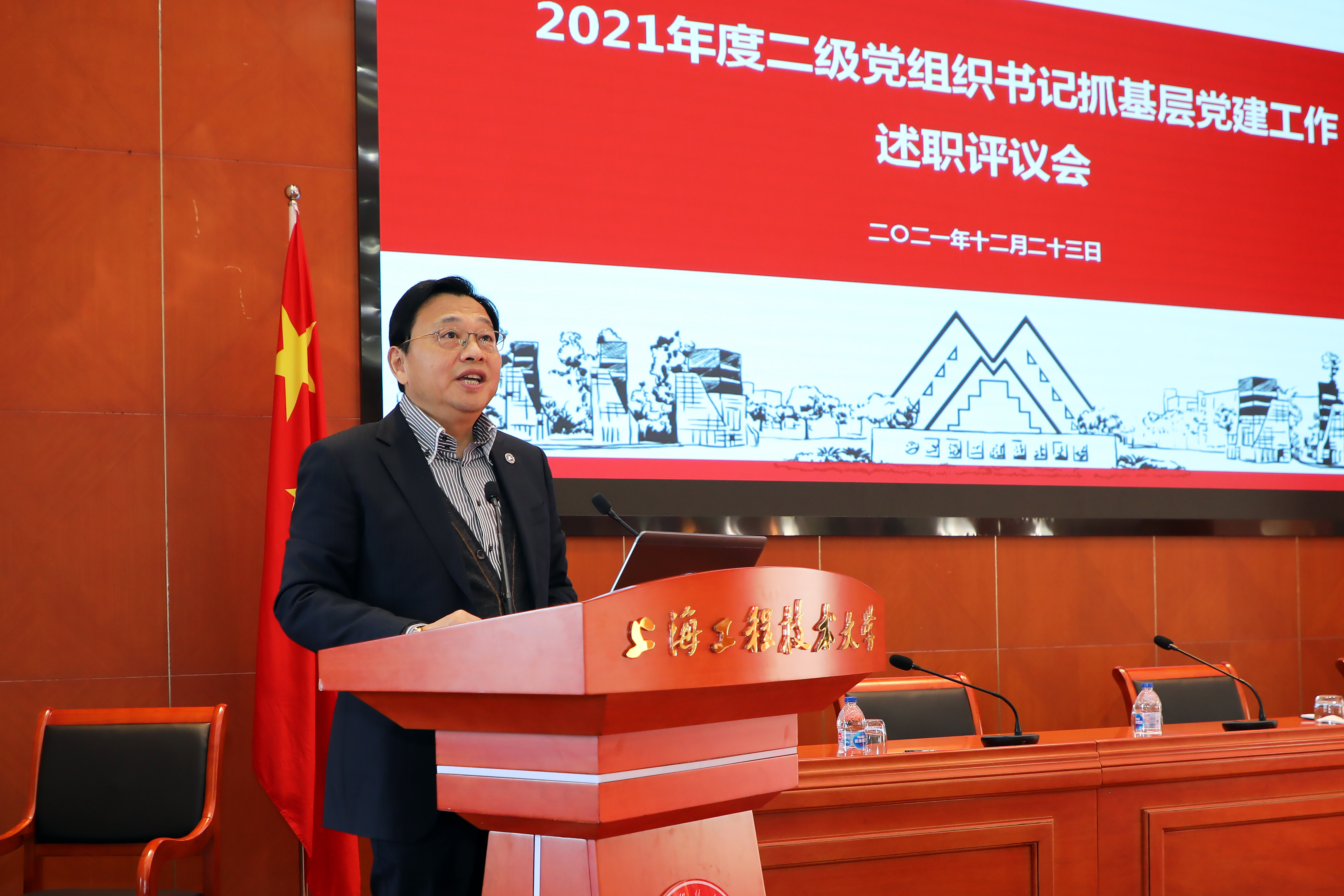 12月23日,学校党委在行政楼B301召开2021年度二级党组织书记抓基层党建工作述职评议会。全体校领导,两委委员,党务职能部门负责人,二级党组织书记、副书记、组织员,学校“两代表一委员”代表,党代会、教授、民主党派代表出席会议。会议由校党委副书记、工会主席史健勇主持。
