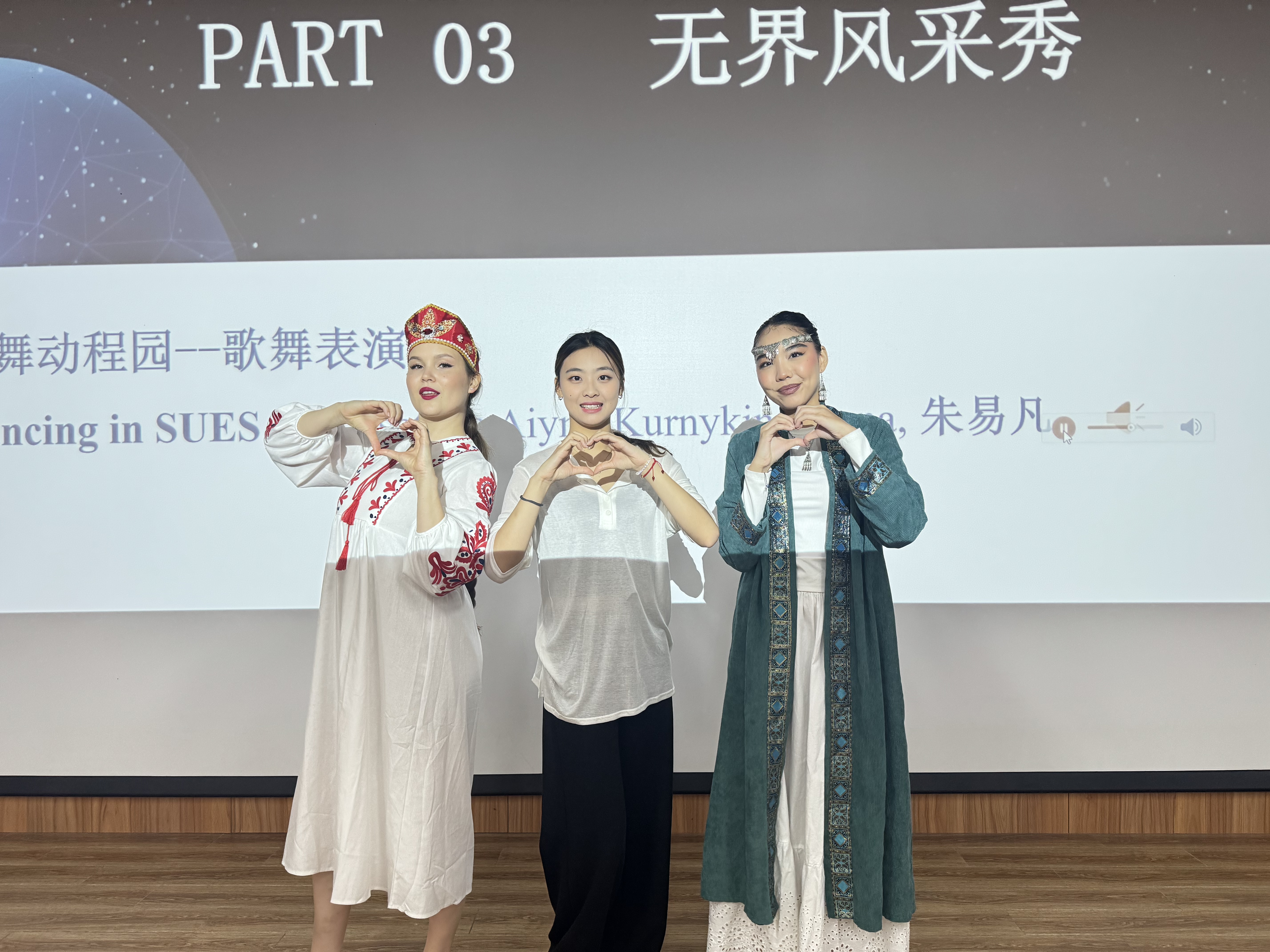 《我的SUES交响曲》以生动镜头串联起留学生在校园的学习生活点滴,细腻展现了不同文化背景下学子们与“程园”的深厚联结,为整场展示活动奠定了温暖共情的基调。同学们开启了一场跨越国界的程园青春对话,参与名企实践和名校研修的学生代表先后登台,分享了他们在企业实践中的行业洞察与名校研修中的文化碰撞,展现了青年学子立足全球、赋能成长的青春担当。