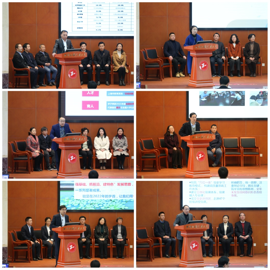 1月6日,2021年度部门考核工作汇报会在行政楼B301会议室举行。全体校领导出席会议,中层干部、教师代表等参加会议。会议分别由校党委副书记、工会主席史健勇,副校长姚秀平主持。