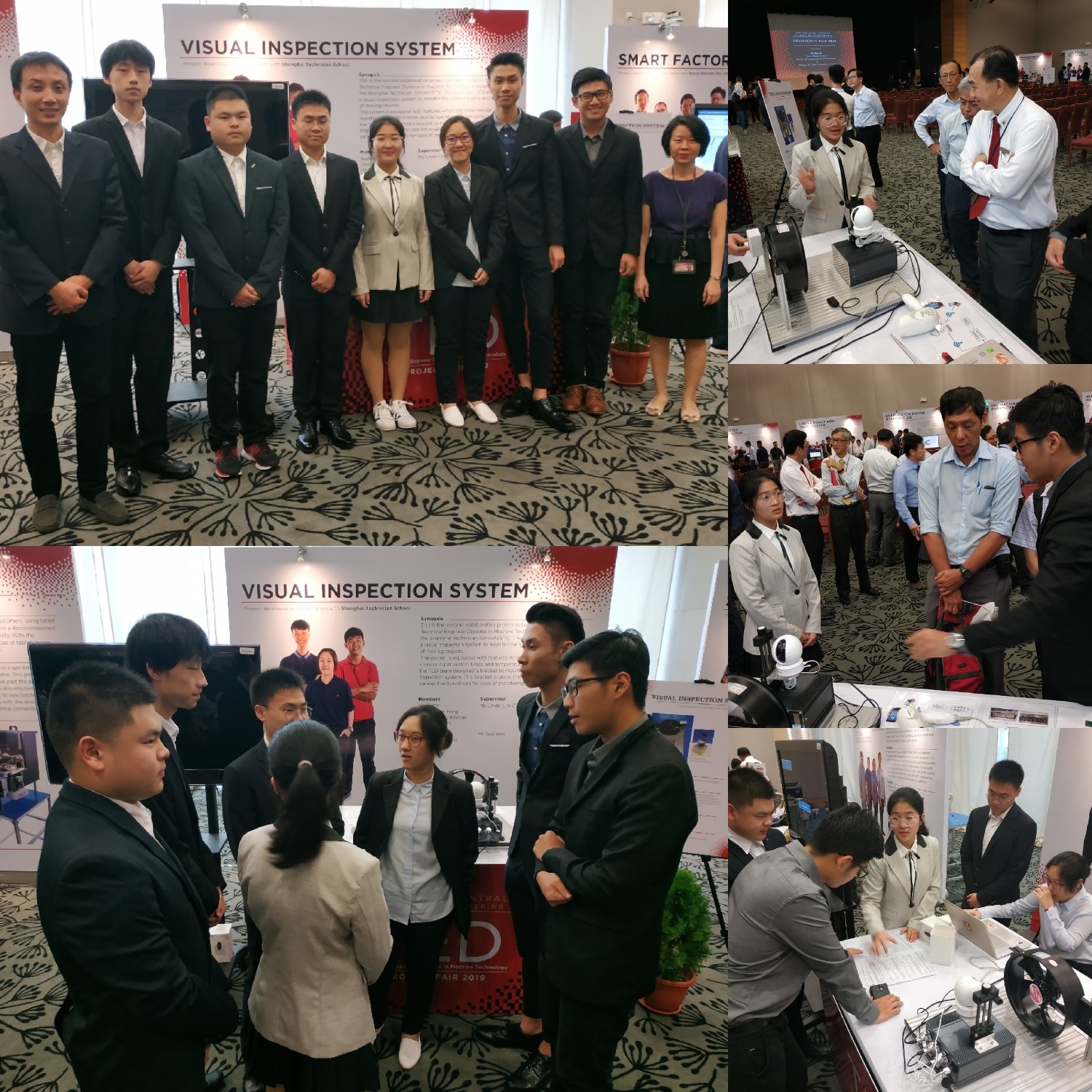 展会共有13个项目参加,包括数控机床、电气装置、机械运输、工业监控等不同领域。我方组员与新加坡ITE组员携创新项目“基于云端控制的频闪静态成像仪”参加了本次展会。该项目可以做为品质管理或设备维护仪器,帮助解决产品的检验问题,可用于飞机引擎的运行、震动的视觉监测,钢材冷轧车间以及薄板镀层车间的表面缺陷的视觉监测,以及对螺旋桨,涡轮机及推进系统中气蚀现象的监测等多种检测领域。