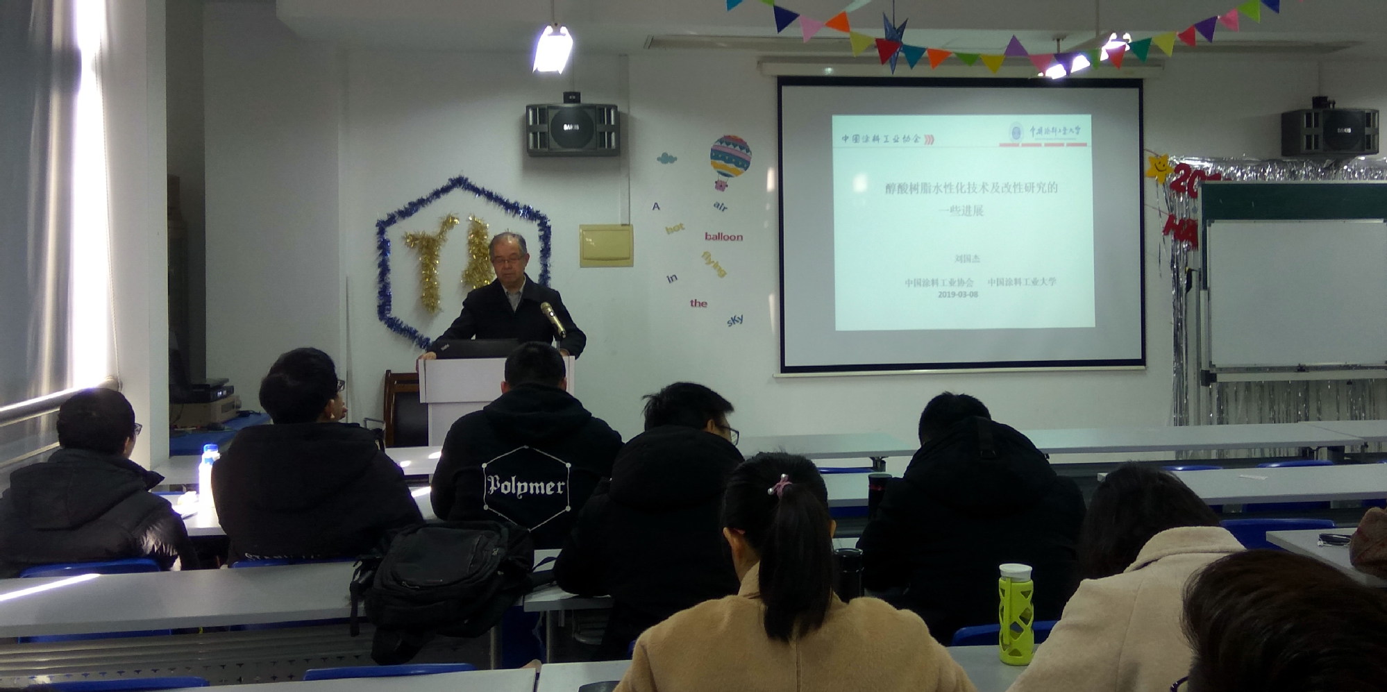 3月10日上午,涂料专家刘国杰教授级高工来校,在实训楼4号楼4405室给涂料工程专业全体师生作了《醇酸树脂水性化技术及改性研究进展》的专题讲座,讲座由高分子材料与工程系主任王继虎主持。