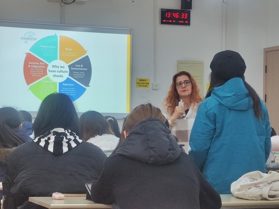 娜塔莉亚·费尔南德斯教授精彩讲授《跨文化交际》课程,与翻译专业学生现场互动,帮助学生理解文化符号和跨文化区别。她面向学校留学生开展了“A Short History of Violence Against Women in Western Media”主题讲座,从语言学视角切入,梳理欧洲主流媒体的历时性报道,揭示社会态度与性别观念的深层变迁。