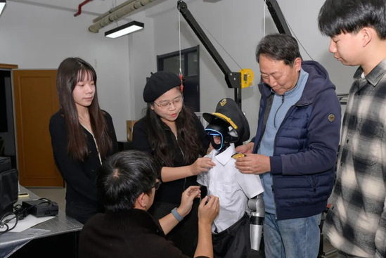 纺织服装学院副院长李春晓带领教师团队从角色、防护、监测这三个特定角度运用自主研发技术制备机器人服装。研发团队三翼协同,聚力创新,形成三位一体的创新引擎,真正体现了学校“工程+设计+管理”三旋翼学科交叉融合特色。