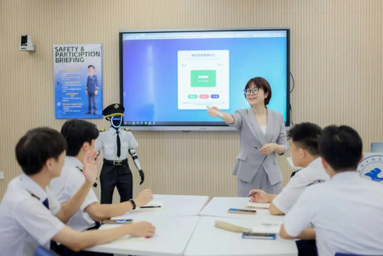“机器人助教为航空英语教学带来了前所未有的可能性,”授课教师李佩绮老师表示,“‘小C’能够模拟各种航空环境下的英语交流场景,让学生获得近乎真实的训练体验,这是传统教学手段难以实现的。”这种“教师主导、机器人辅助”的模式,不仅提升了教学效率,更通过人机互动激发了学生的学习兴趣与参与感,重塑课堂体验。