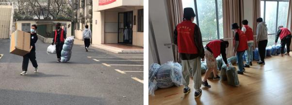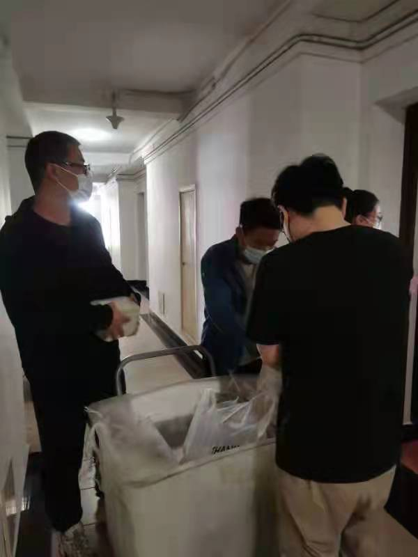 长宁校区的志愿者们在辅导员李永贺老师的带领下,主动承当起防疫物资搬运、清点、分发的工作,充分发挥了模范带头作用。