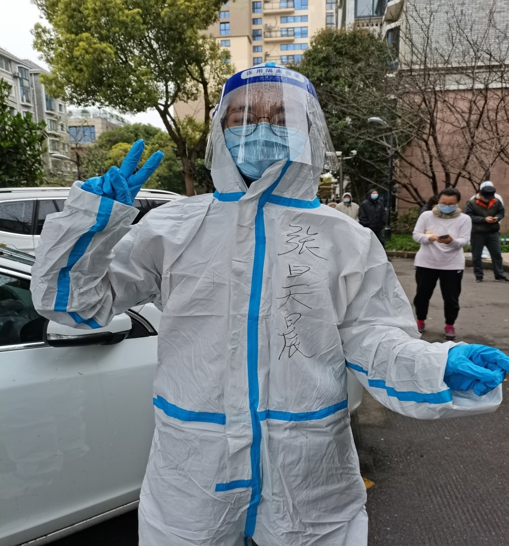 在“全副武装”的状态下禁食禁水数小时,每当她结束工作脱下防护服的时候,汗水都浸湿了衣衫。虽然很辛苦,但是张昊晨老师觉得一切都是值得的,她说:“身为一名青年老师,我希望尽微薄之力,主动承担一些社会责任,为抗击疫情贡献自己的一份力量。让我们齐心协力,共克时艰,为上海加油!”