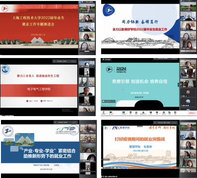 为积极应对疫情对毕业生就业工作的影响,进一步推进2022届毕业生就业工作,3月31日下午,学校通过腾讯会议召开“2022届毕业生就业工作专题推进会”。校党委副书记、校长俞涛,校党委副书记、副校长朱晓青出席会议,上海市学生事务中心副主任周红星受邀参会。学生工作部(处)长、研工部部长朱蓓,各学院负责人、党委副书记、就业辅导员、毕业班辅导员、教师代表以及学生职业发展教育服务中心全体成员参加了会议。会议由校党委副书记、副校长朱晓青主持。