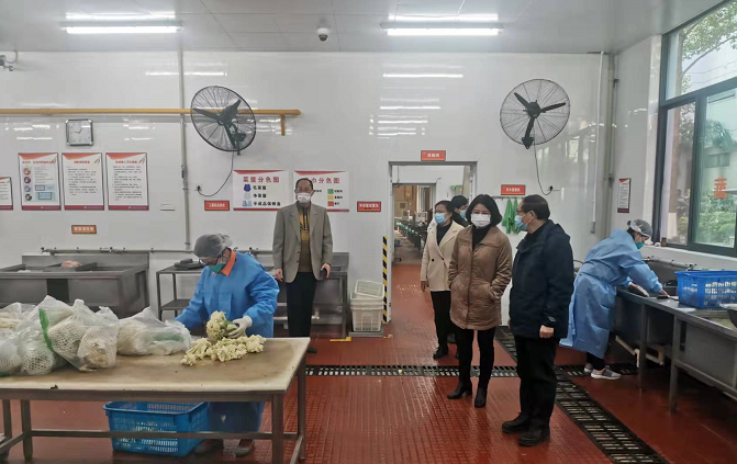 朱晓青副书记、副校长一行首先来到食堂,逐一检查食堂餐饮储备保障落实、食堂进货质量监督、食堂相关工作人员个人防护与环境消杀等情况,强调积极做好“人—物—环境预防”,继续加强冷链消毒等工作落实,继续坚持无接触配送细化到位,巩固好来之不易的抗疫成果,织密消杀防控环节,不让无形的病毒通过冷链、蔬菜瓜果等钻进校园。