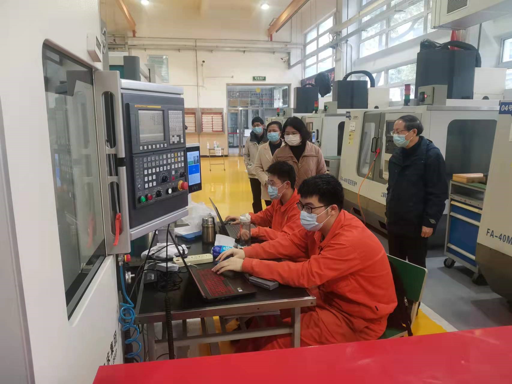 专班一行走进技能楼一楼看望正在集训的学生,朱晓青副书记、副校长对参赛选手克服诸多困难返校进行封闭式集训表示肯定。她表示,停课不停学,停课不停赛,在抗击疫情的非常时期,务必时刻绷紧防疫这根弦,学习、防疫两手抓。集训团队成员表示,将加倍珍惜宝贵的线下集训机会,全力以赴,争取赛出好成绩。