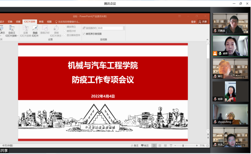 为扎实有序推进落实上级有关疫情防控工作的部署安排,积极应对疫情的影响,确保在疫情防控的同时,顺利开展学院各项工作,机械与汽车工程学院党委于4月4日上午在线召开学院疫情防控专项工作会议,学院党政班子成员、工会主席、党政办主任、全体辅导员与会,会议由学院党委书记虞蓉主持。