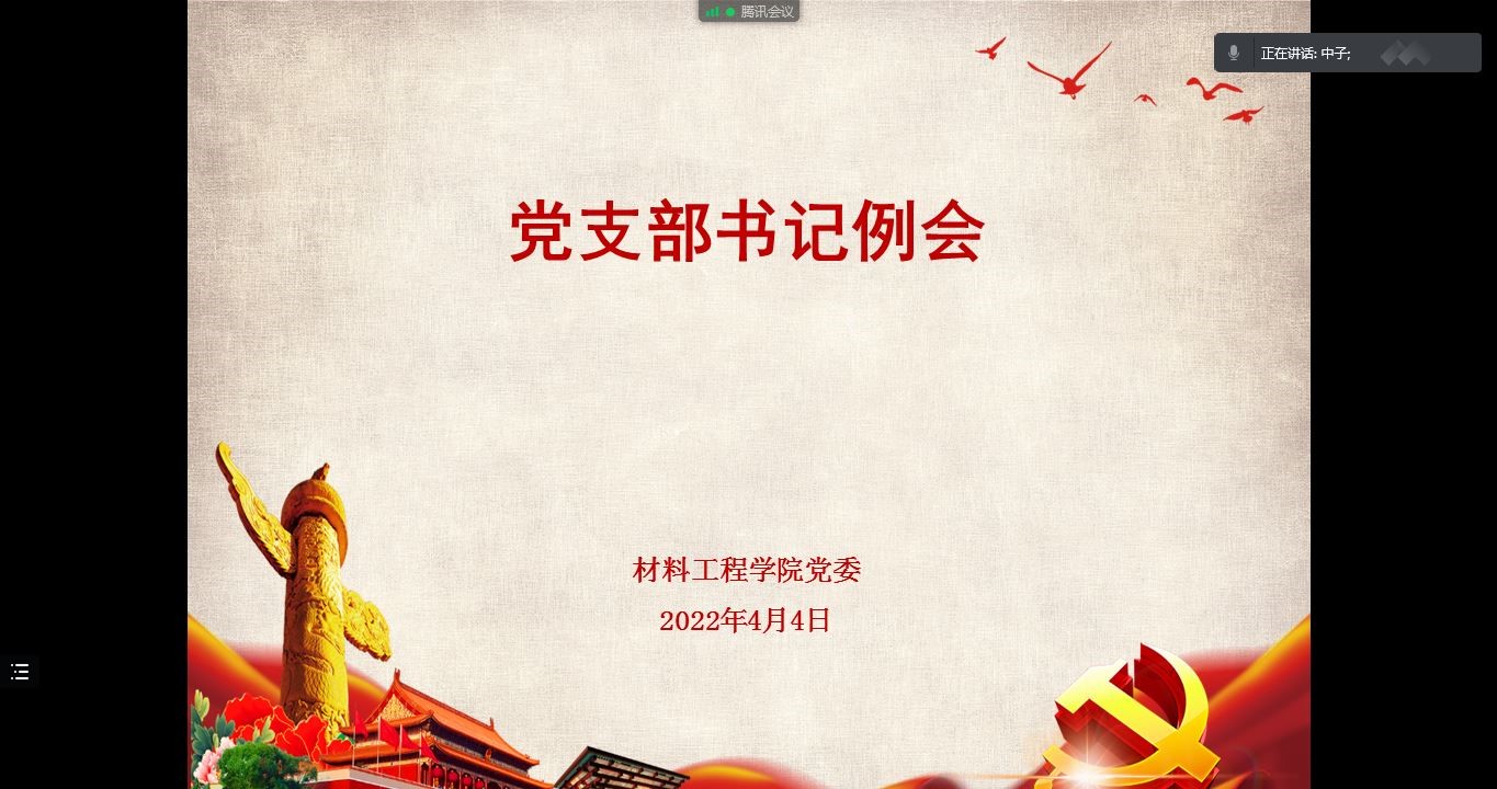 4月4日下午,材料工程学院党委在线举行党支部书记工作例会,重点传达和部署近期疫情防控工作精神。学院党委书记张朝民,党委副书记、院长周细应,党委副书记黄中子、党委组织员和全体党支部书记参加会议。会议由学院党委书记张朝民主持。