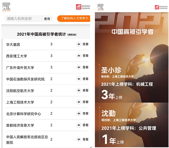 2021爱思唯尔“中国高被引学者”上榜共计4701人, 来自523所高校、企业及科研机构,覆盖了10个教育部学科领域中的84门一级学科。2015年,爱思唯尔与上海软科教育信息咨询有限公司联合发布“中国高被引学者年度榜单”,至2022年已是第8次发布,受到国内外众多媒体和学者的高度关注。