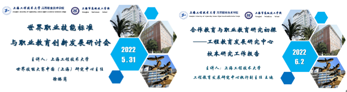 在防疫工作在之余,他们是职教事业的“引航者”。徐滕岗老师和王迪老师发挥自身优势,分别在虹口校区举办了以“世界职业技能标准与职业教育创新发展”“合作教育与职业教育研究初探——工程教育发展研究中心校本研究工作报告”为主题的专题研讨会,为学院校的职教事业传经送宝。